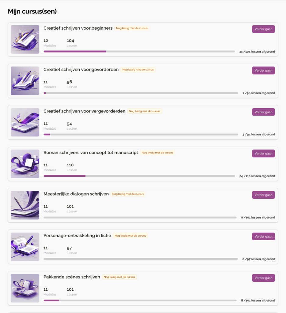 Theorie over stijl, structuur en opbouw, direct toepasbaar. Jij bepaalt het tempo.